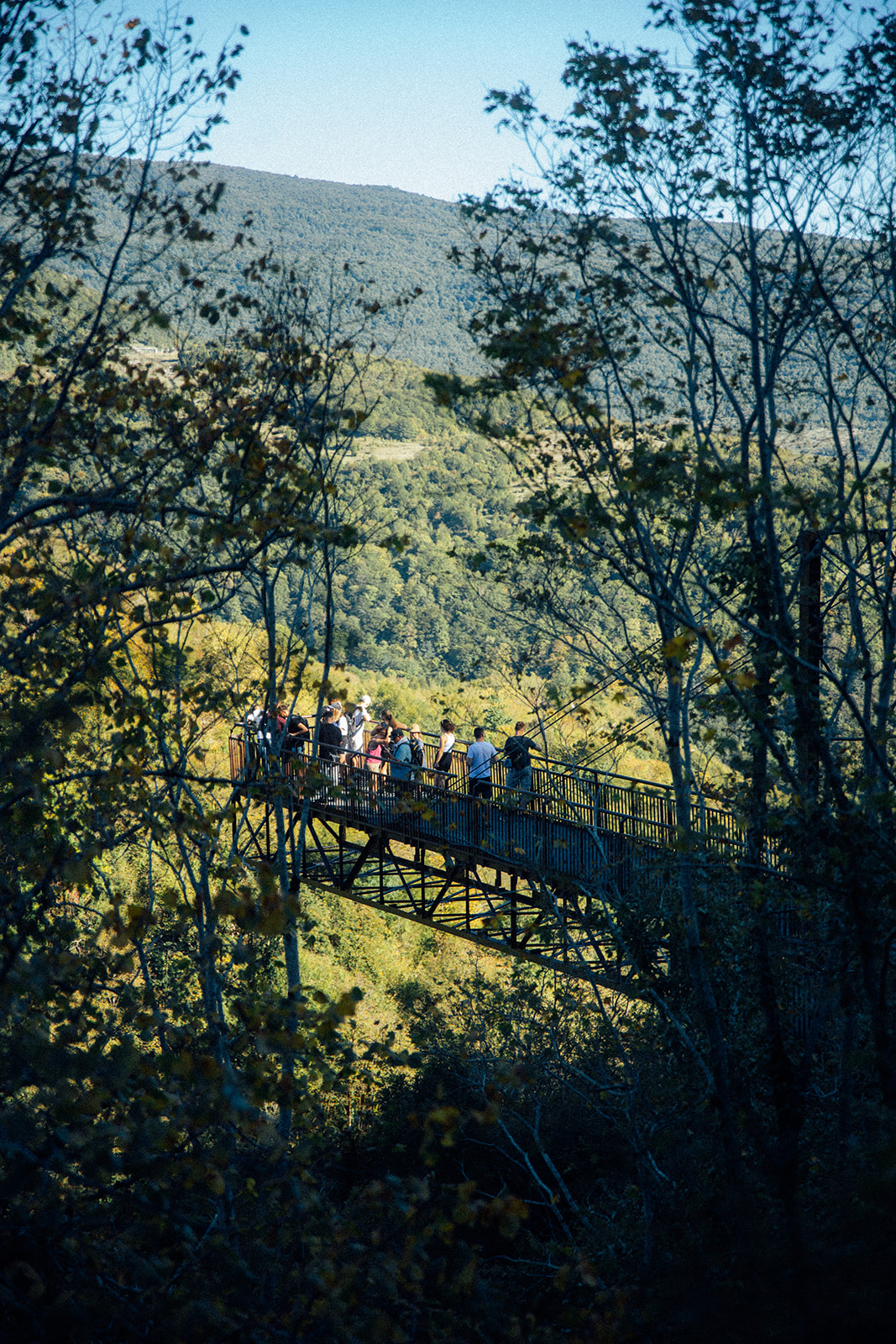 Następnym przystankiem jest Kanion Okatse, którego zwiedzanie to prawie 2 km emocjonujący spacer kładką ułożoną bezpośrednio PONAD kanionem. W kulminacyjnym momencie będziemy przemierzać nad przepaścią, która liczy sobie nawet 100m nad ziemią! Patrząc pod nogi, będziemy mieć wrażenie, że unosimy się w powietrzu dzięki technologii mostków, która składa się z metalowych konstrukcji. Historia ta nie jest wskazana dla osób z poważnym lękiem wysokości.  Adrenalina gwarantowana. Dojście do Kanionu to w sumie 5 km pieszo, ale osoby o słabej kondycji fizycznej mogą wykupić transport 4×4 bezpośrednio do wejścia.
